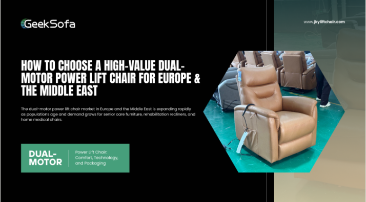 The Dual-Motor Power Lift Chair combines technology fabric, independent reclining control, and OKIN USB handset with backup battery to meet the rising demand in the-European and Middle Eastern senior-care furniture market.