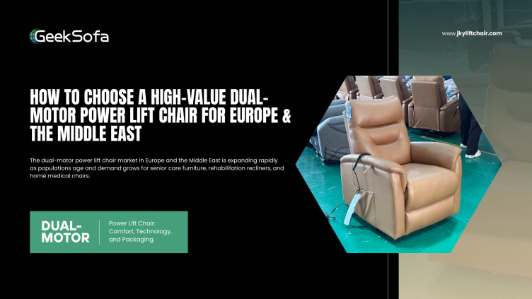 The Dual-Motor Power Lift Chair combines technology fabric, independent reclining control, and OKIN USB handset with backup battery to meet the rising demand in the European and Middle Eastern senior-care furniture market.